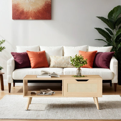 39" Rattan Coffee Table,Boho Coffee Table with Drawer & ShelfThis Coffee table adds both style and practical to use in many different ways at home. If your space is limited and you need a place to stash remote controls, magazines or board games etc, the coffee table with drawer and shelf is a better choice for your living room space. Bay Isle Home Color: OakBay Isle Home