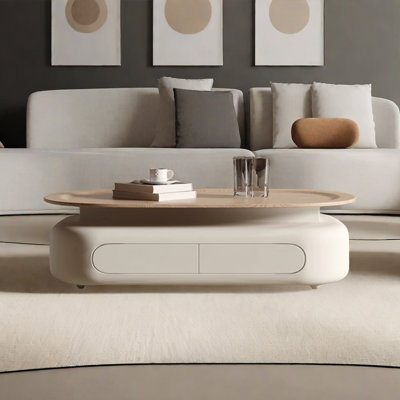 Cream Style High-grade Solid Wood Coffee Table Coffee TableDiscover the blend of technology and nature with our Modern Concave Coffee Table. Featuring a soft, original wood-colored concave top for a unique, inviting feel and a creamy base that houses solid wood drawers for poetic storage solutions. The body, made from E1 density board and finished with a sleek, durable lacquerjessica
