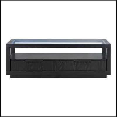 Modern Wood Coffee Table with 2 Drawers ,Minimalist Display Coffee Table with TransparentThe glass top is not only visually appealing, but also durable and easy to clean, making it ideal for everyday use. Its transparency allows you to clearly see the items displayed on the open shelves below, creating an airy and spacious feel in your living room. Latitude Run Color: BlackLatitude Run