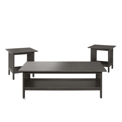 Coffee Table and Two End Table Set Antique Gray Finish 3pc Occasional Table Set WoodenCountry of Origin: MalaysiaMade of rubberwood veneer, wood and engineered woodAntique gray finish1 Coffee Table and 2 End TablesEach Piece with 1 Shelf One Allium WayOne Allium Way