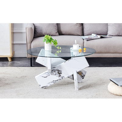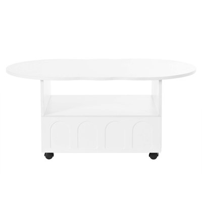 Flexible Style Coffee Table With 2 Brake Wheels, Cloud Top Side Table With Drawer, Irregular Center Table With Large Storage For Living RoomUpgrade your living room with our elegant coffee table, featuring a sleek tempered glass surface that's not only stylish but also a breeze to clean. With smooth edge treatment for safety and durable iron leg support, this table is both strong and beautiful. Beneath the glass lies a practical MDF storage space, keepingIvy Bronx