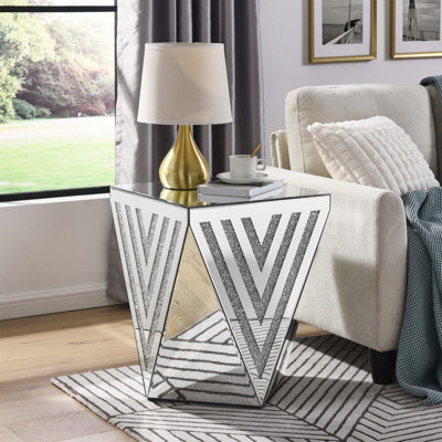 Mirror Table, Gorgeous Side Table With Crystal Inlay, Small Mirror Coffee Table Suitable For Living Room, Sofa, Bedroom, CornerUpgrade your living room with our elegant coffee table, featuring a sleek tempered glass surface that's not only stylish but also a breeze to clean. With smooth edge treatment for safety and durable iron leg support, this table is both strong and beautiful. Beneath the glass lies a practical MDF storage space, keepingMercer41