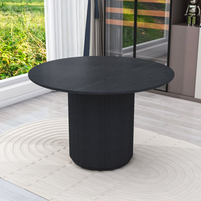 Pelemon Round Dining Table, Pedestal Dining Table, Leisure Coffee TableBuilt to last, the table features a thicker and heavier top and base, ensuring it stands firm and stable through countless meals, conversations and meetings. This table features a top made from MDF covered in a stunning black oak veneer finish, the sophisticated T-shaped design and delicately crafted bottom line enhancLatitude Run
