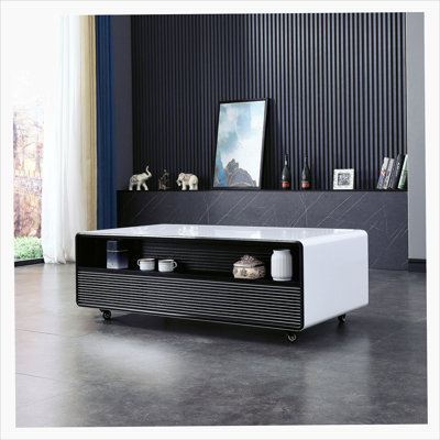Smart Table Fridge, Multifunctional Coffee Table, Tempered Glass Table Top and Back StorageEnjoy the perfect combination of technology and comfort with this smart coffee table that transforms your living room into a multi-functional entertainment center. The double temperature zone cooler drawer keeps drinks and snacks at the ideal temperature, with the left drawer at 37.4-46.4F and the right side at 42.8-60Orren Ellis