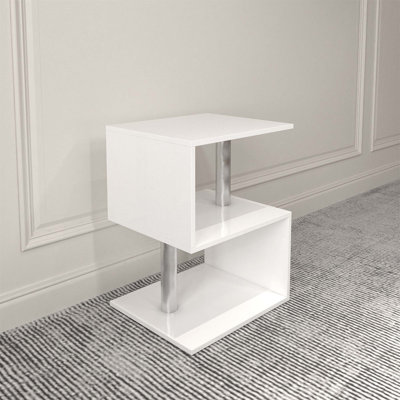 3 Tier S-Shaped End Table,High Gloss Side Table With Open Storage Shelf And USB Power Supply,LED Coffee Table For Living Room,BedroomUpgrade your living room with our elegant coffee table, featuring a sleek tempered glass surface that's not only stylish but also a breeze to clean. With smooth edge treatment for safety and durable iron leg support, this table is both strong and beautiful. Beneath the glass lies a practical MDF storage space, keepingWrought Studio