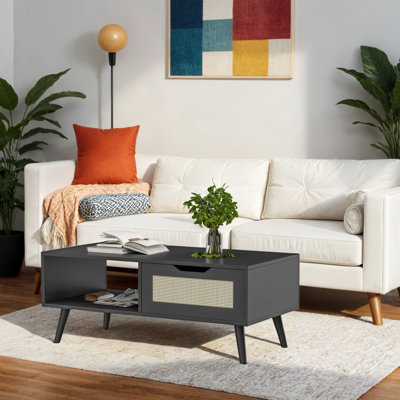 39" Rattan Coffee Table,Boho Coffee Table with Drawer & ShelfThis Coffee table adds both style and practical to use in many different ways at home. If your space is limited and you need a place to stash remote controls, magazines or board games etc, the coffee table with drawer and shelf is a better choice for your living room space. Bay Isle Home Color: BlackBay Isle Home