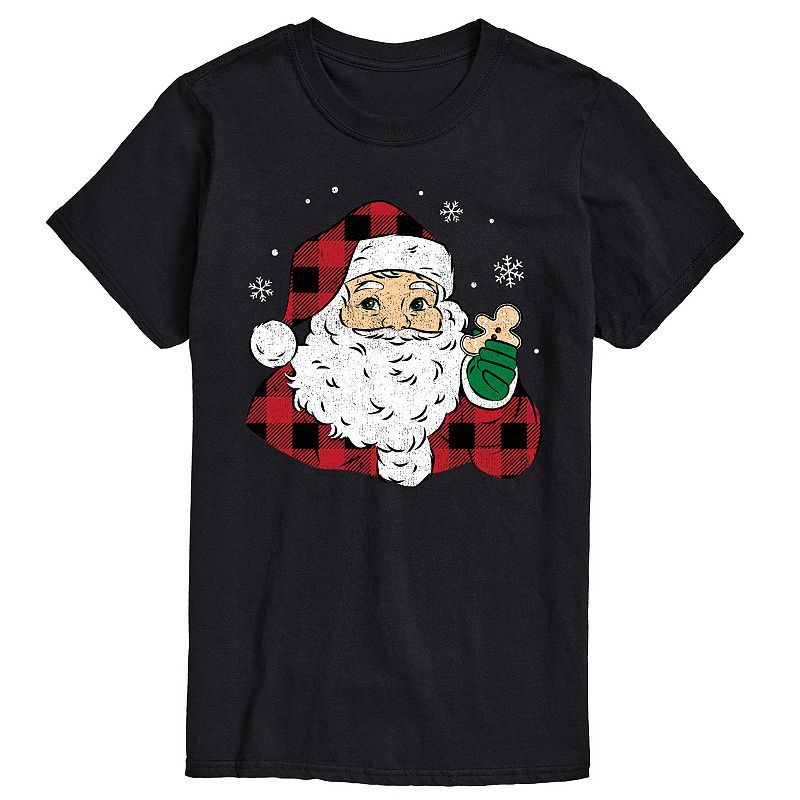 Men's Vintage Santa Plaid Cookie Graphic Tee, Size: XL, BlackUpdate your holiday wardrobe with this Men's Vintage Santa Plaid Cookie Graphic Tee. FEATURES Crewneck Short sleeveFABRIC & CARE Solid colors: cotton; Heather colors: cotton, polyester Machine wash Imported Size: XL. Color: Black. Gender: male. Age Group: adult.Licensed Character