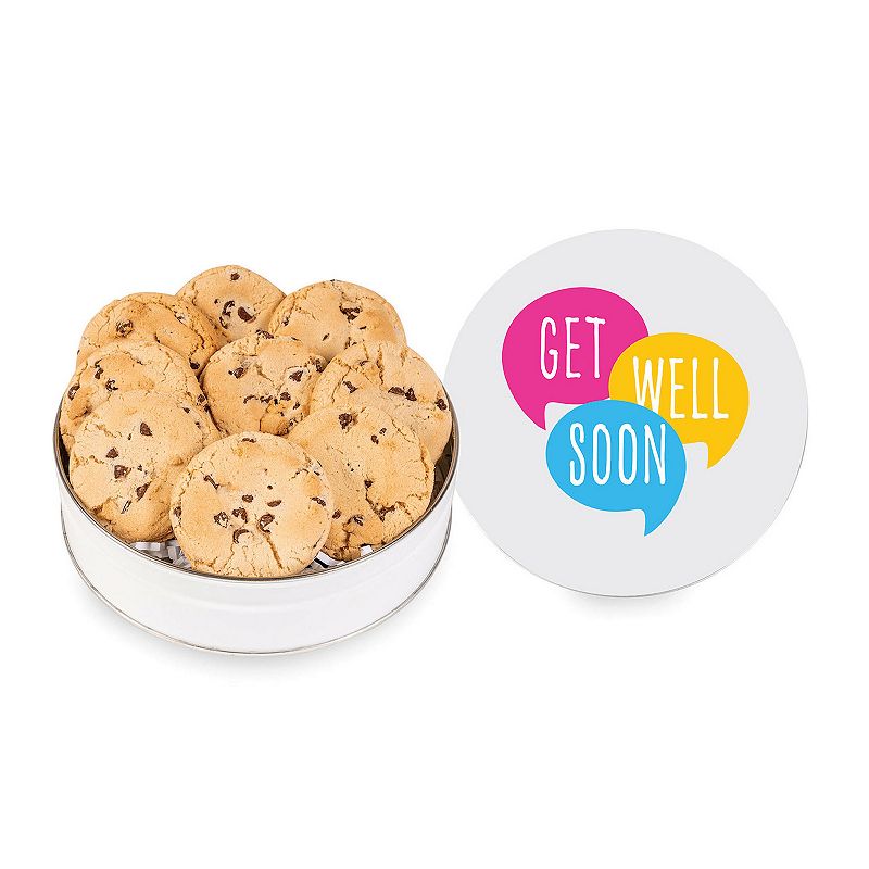 FRESH BEGINNINGS Get Well Chocolate Chip Cookie Tin, WhiteThis FRESH BEGINNINGS Get Well Chocolate Chip Cookie Tin is the perfect gift! This FRESH BEGINNINGS Get Well Chocolate Chip Cookie Tin is the perfect gift! WHAT'S INCLUDED 1 tin filled with 9 individually wrapped chocolate chip cookiesDETAILS Product weight: 2 lbs. Gift Givers: This item ships in its original packagingFRESH BEGINNINGS