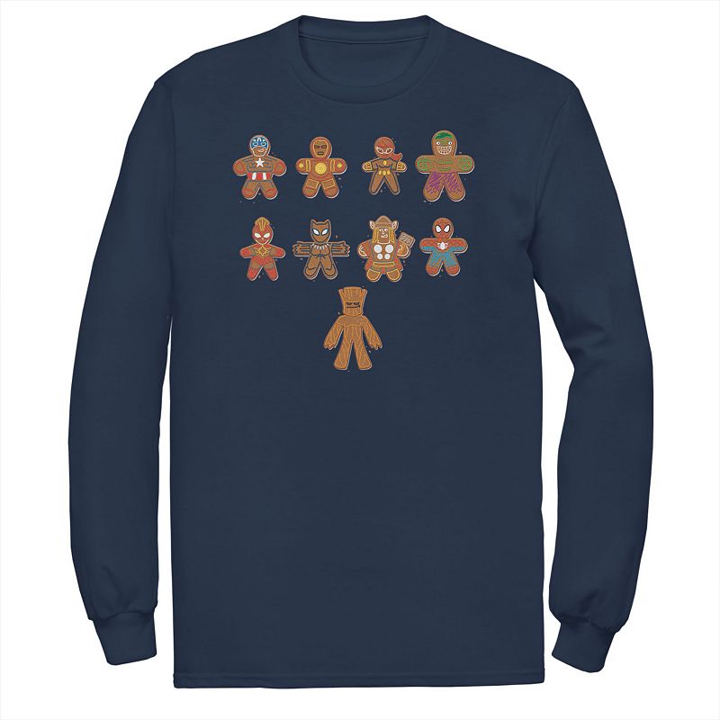 Big & Tall Marvel Avengers Gingerbread Cookie Tee, Men's, Size: 3XL Tall, BlueConquer the holidays in seasonal style with this men's Marvel Avengers Gingerbread Cookie tee. Conquer the holidays in seasonal style with this men's Marvel Avengers Gingerbread Cookie tee. Crewneck Long sleevesFABRIC & CARE Cotton, polyester Machine wash Imported Size: 3XL Tall. Color: Navy. Gender: male. Age Group: aLicensed Character
