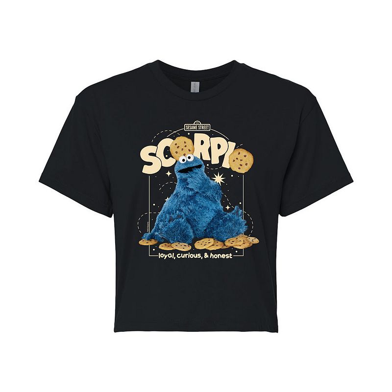 Juniors' Sesame Street Cookie Monster Scorpio Cropped Tee, Girl's, Size: Small, BlackShe will love showing off her style with this Juniors' Sesame Street Cookie Monster Scorpio Cropped Tee. FEATURES Short sleeves CrewneckFABRIC & CARE Cotton Machine wash Imported Size: Small. Color: Black. Gender: female. Age Group: kids.Licensed Character