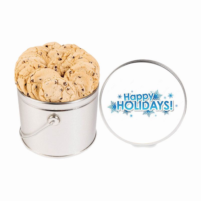 FRESH BEGINNINGS Holiday Season Chocolate Chip Cookie Tins, Happy HolidaysEnjoy a sweet treat this holiday season with these FRESH BEGINNINGS Holiday Season Chocolate Chip Cookie Tins. Enjoy a sweet treat this holiday season with these FRESH BEGINNINGS Holiday Season Chocolate Chip Cookie Tins. FEATURES Cookies are non-melt and have a 1 month shelf life. Bucket filled with 36 individually wrFRESH BEGINNINGS