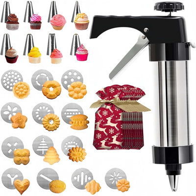 Spritz Cookie Press Gun Kit with 13 Cookie Press Discs and 8 Icing TipsThis cookie press kit allows you to effortlessly create cookies with batter, dough and decorate cakes with mousse, fruit puree, and more. It's perfect for igniting baking parties, making it easy for you to enjoy delightful baking moments with family or friends. TiprolTiprol