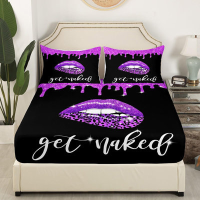 Feelyou Purple Leopard Sexy Lips Bedding Set Queen Size Boys Girls Teens Adults, Purple Black Get Naked Bed Sheet Set Pink Sexy Lips Fitted Sheet FunnAll-around elasticWon't pop off AMIPORAMIPOR