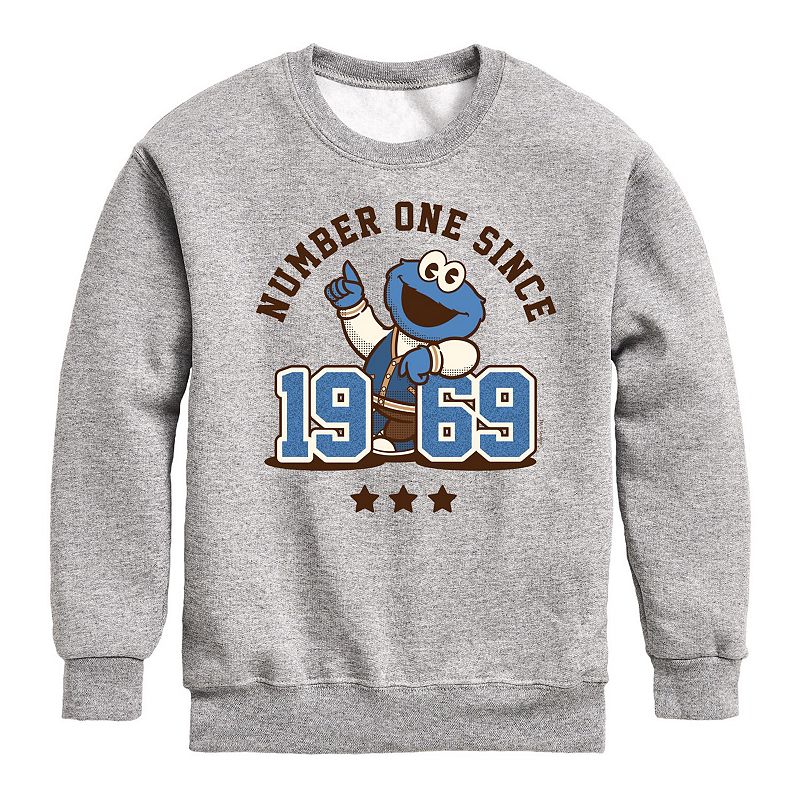 Boys 8-20 Sesame Street Cookie Monster Number One Fleece Sweatshirt, Boy's, Size: Small, Grey GrayHe'll love the classic look of this fun boys' Sesame Street Cookie Monster Number One Fleece Sweatshirt. FEATURES Crewneck Long sleevesFABRIC & CARE Solid colors: cotton; Heather colors: cotton, polyester Machine wash Imported Size: Small. Color: Heather Gray. Gender: male. Age Group: kids.Licensed Character