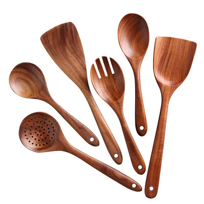 6 Pcs Wooden Utensils For Cooking, Natural Teak Wood Non-Stick Cooking SpoonsOur wooden spoons set is a multifunctional kitchen utensils include flat spatula, fried spatula, strainer spoon, salad spoon, salad fork, mixing spoon. The variety of these kitchen wooden spoons is enough to meet all your cooking needs.The BPA free kitchen cooking utensils set is made of 100% great teak wood. No chemicSuprib
