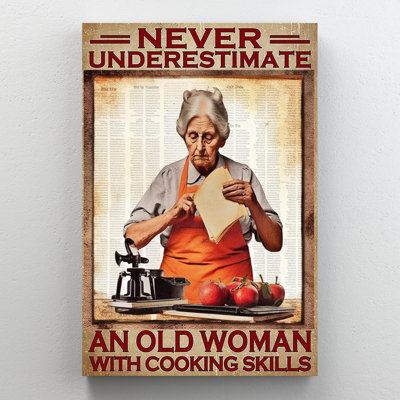 An Old Woman With Cooking Skills - 1 Piece Rectang An Old Woman With Cooking Skills - 1 Piece Rectangle Graphic Art Print On Wrapped Canvas On CanvasAll pleasure is ours to have your attention on our finest canvas! This product is one of the indispensable items to highlight your room with impression and luxury. Also, it is such an excellent idea to make it a gift to your dearest ones! Trinx Size: 36" H x 24" W x 1.25" DTrinx