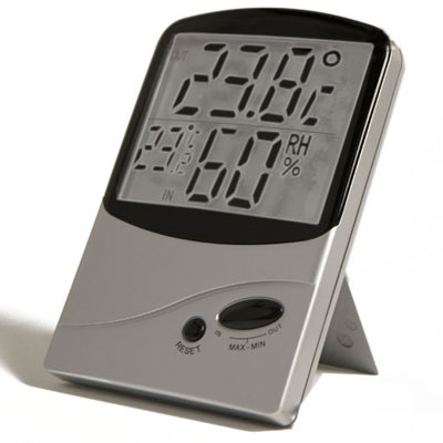 Active Air Hygro-Thermometer and HygrometerCopper Roof: No Color: Gray Very accurate and hangs or mounts on a wall surface Large number LCD display is visible from a distance Hygro-thermometer HydrofarmHydrofarm