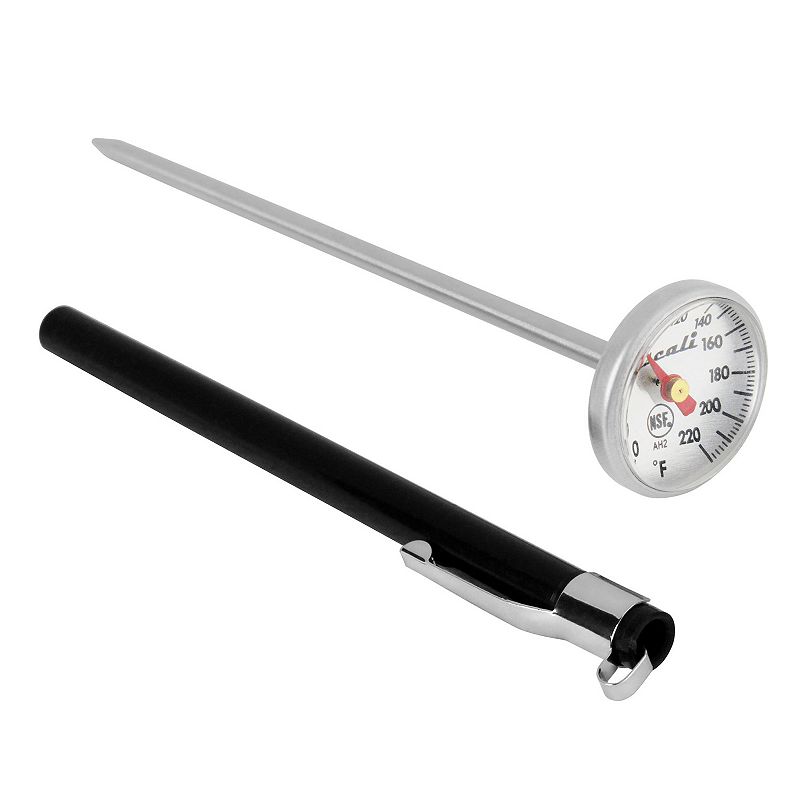 Escali Instant Read Dial Thermometer, GrayLife in the kitchen is easier when you use the right tool for the task. The Escali instant read thermometer ensures your food is cooked to a safe internal temperature and the desired doneness. Watch the product video here.PRODUCT FEATURES Easy-to-read magnified shatterproof lens Antimicrobial protective sheath with pocEscali