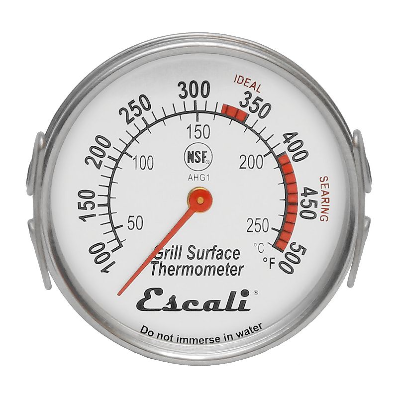 Escali Grill Surface Thermometer, GrayThe Escali Grill Surface Thermometer will help you maintain the proper surface temperature on your grill top for cooking food perfectly. The dial display is easy to read and features ?IDEAL' and ?SEARING' temperature zones. Range: 100°F to 550°F (40°C to 290°C) Safe-lift side tabs Ideal grill & searing temperature zoneEscali