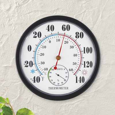 Household Wall Thermometer with HygrometerThis attractive and easy-to-read wall thermometer includes a hygrometer as well so you'll always know the relative humidity and temperature at a glance. The large numbers display the temperature in both Fahrenheit (-40 - 140) and Celsius (-40 - 60) and the humidity range from 0 - 100%. The weather-resistant thermometerWinston Brands