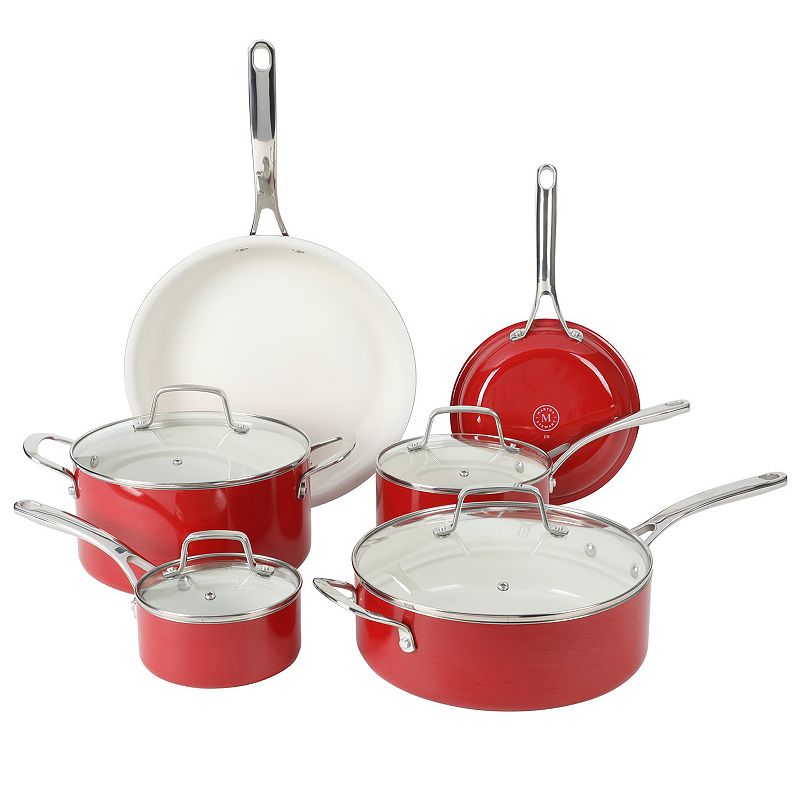 Martha Stewart Lockton 10-Piece Ceramic Nonstick Aluminum Cookware Set with Lids, RedKick start your cooking with this versatile Martha Stewart Lockton 10-Piece Ceramic Nonstick Aluminum Cookware Set that includes the Lids. Kick start your cooking with this versatile Martha Stewart Lockton 10-Piece Ceramic Nonstick Aluminum Cookware Set that includes the Lids. FEATURES Glass lids let you look while youMartha Stewart