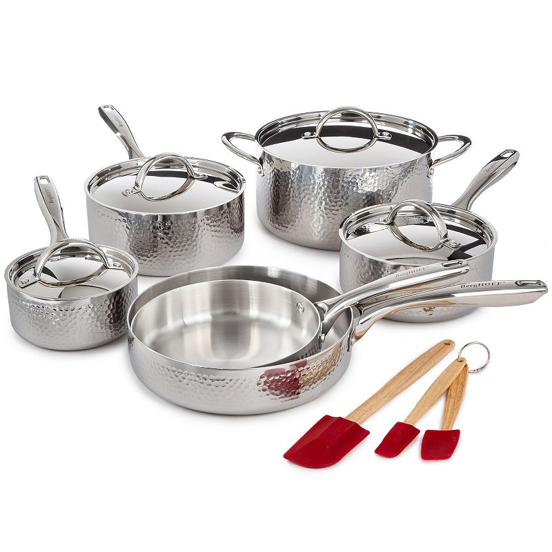 BergHOFF Vintage 13 pc Tri-Ply 18/10 Stainless Steel Cookware with Spatulas Set, MultiThe BergHOFF Vintage 13 pc Tri-Ply 18/10 Stainless Steel Cookware with Spatulas Set is designed for efficient cooking. With tri-ply stainless steel construction and spatulas included, this set offers both style and performance. FEATURES It's tri-ply 18/10 stainless steel body possesses an aluminum core for heat retentiBergHOFF