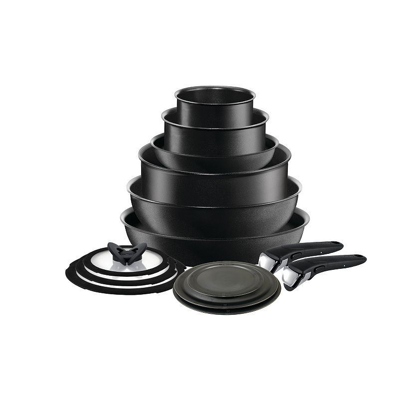 T-Fal Ingenio Expertise Platinum 14-pc. Non-Stick Cookware Set, BlackClick, cook and stack with T-fal Ingenio, the Genius Kitchen System. This non-stick induction cookware is designed with a patented safe detachable handle that can be detached to stack the pots and pans to save up to 50% cupboard space. Attach the handle and Ingenio goes from the stove, to the oven, onto the table and iT-Fal