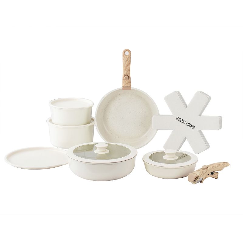 Country Kitchen 16-pc. Detachable Handle Cookware Set, WhiteDeclutter your cabinets and maximize your storage space with this Country Kitchen 16-pc. Detachable Handle Cookware Set. Declutter your cabinets and maximize your storage space with this Country Kitchen 16-pc. Detachable Handle Cookware Set. FEATURES Detachable Handle Nonstick Ceramic coated 2 Food storage lids 4-pc. pCountry Kitchen