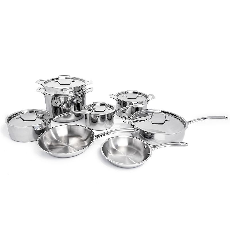 BergHOFF Professional 13 pc Tri-Ply 18/10 Stainless Steel Cookware Set with SS Lids, MultiThe BergHOFF Professional 13 pc Tri-Ply 18/10 Stainless Steel Cookware Set with SS Lids provides professional-grade cooking tools for any kitchen. Tri-ply construction ensures even heating and consistent results. FEATURES It's tri-ply 18/10 stainless steel body possesses an aluminum core for heat retention and distribuBergHOFF