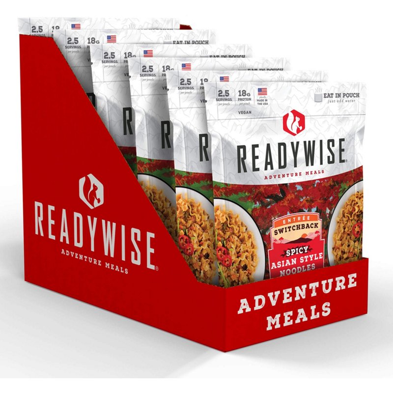 Wise Company Readywise Switchback Spicy Asian Style Noodles 6-Pack - Camp Food And CookwareEat well while on the trail with the Wise Company Readywise Switchback Spicy Asian Style Noodles 6-Pack. This delicious spicy noodle dish comes in a lightweight package that's easy to pack and port around. Just add water to prepare 2.5 servings worth of food, which can be eaten directly from the pouch. Wise Company ReaWise Company