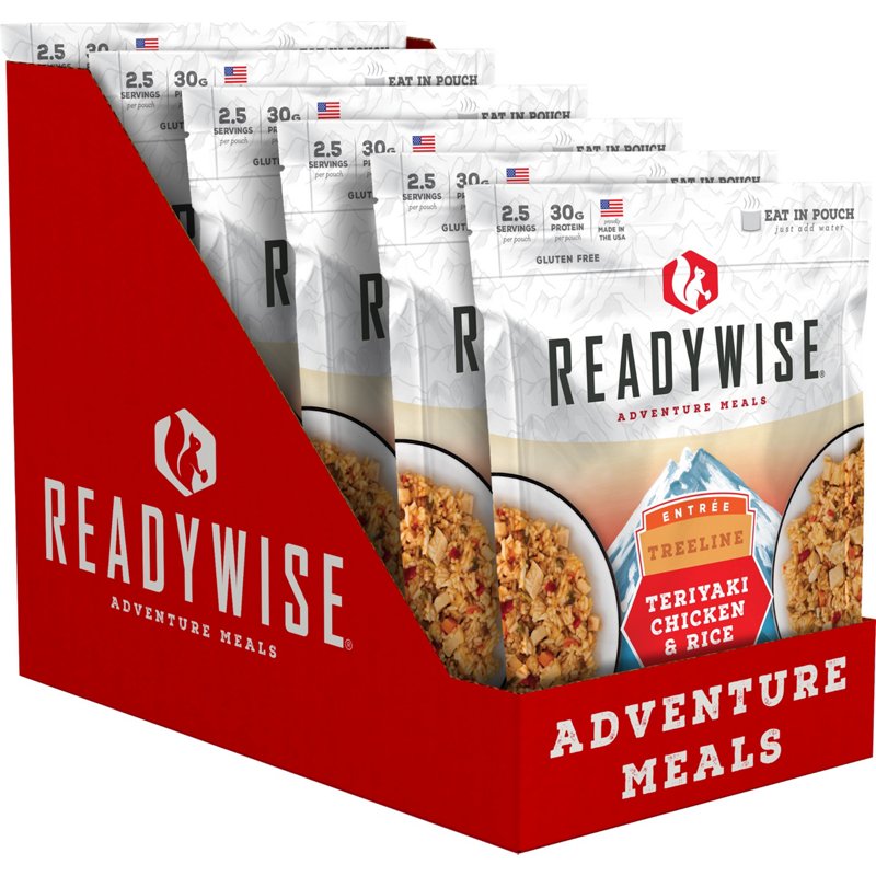 Wise Company Readywise Treelline Teriyaki Chicken and Rice 6-Pack - Camp Food And CookwareSit back and relax after your hike and eat the Wise Company Readywise Treelline Teriyaki Chicken and Rice 6-Pack. The bag is re-sealable, which is great for eating on-the-go, and the food is ready to eat from the pouch, just add water. Wise Company Readywise Treelline Teriyaki Chicken and Rice 6-Pack - Camp Food And CoWise Company