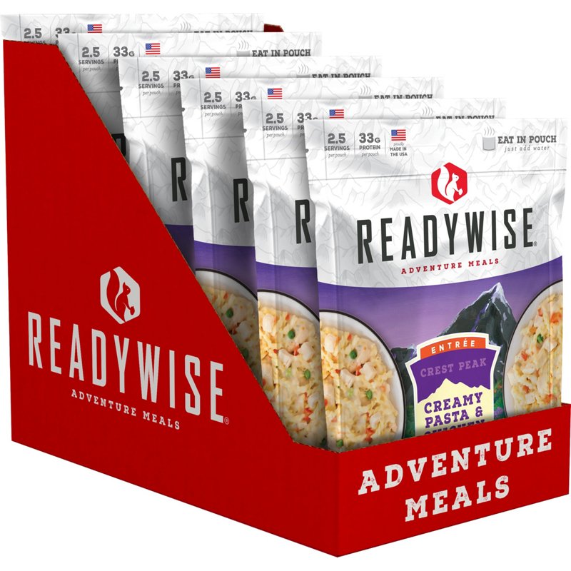 Wise Company Readywise Crest Peak Creamy Pasta and Chicken 6-Pack - Camp Food And CookwareThe Wise Company Readywise Crest Peak Creamy Pasta and Chicken 6-Pack will re-energize you after a long day. The bag is re-sealable, which is great for eating on-the-go, and the food is ready to eat from the pouch, just add water. Wise Company Readywise Crest Peak Creamy Pasta and Chicken 6-Pack - Camp Food And CookwarWise Company