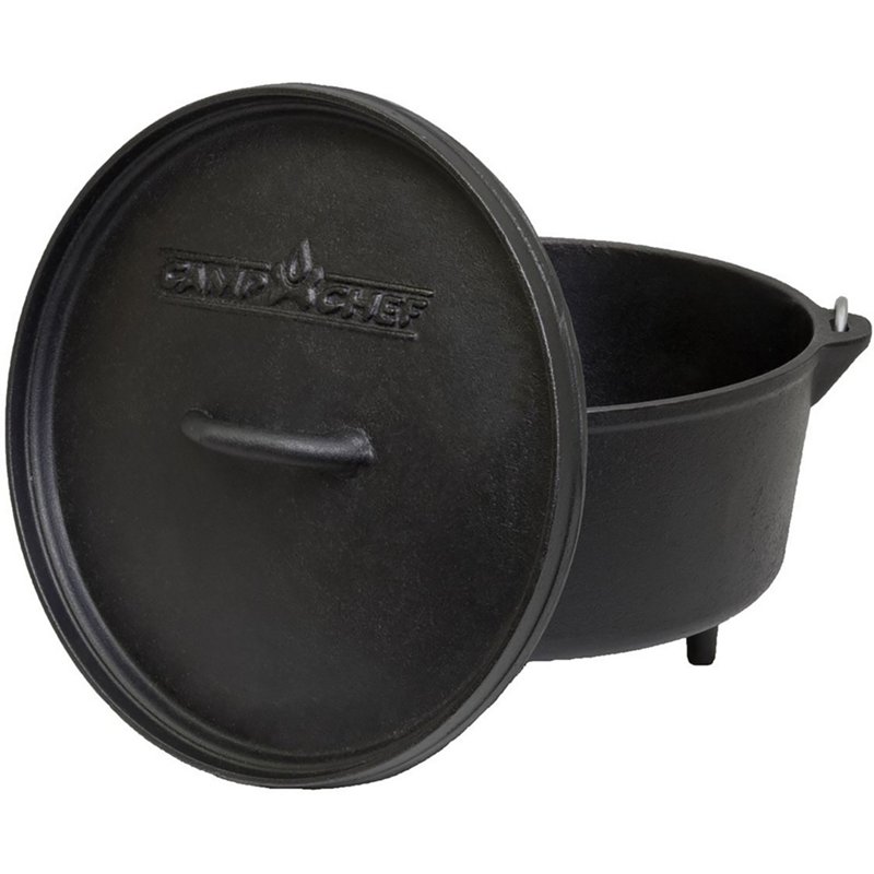 Camp Chef 12 in Cast Iron 8 qt Deep Dutch Oven Black - Castiron CookwarePrepare hearty meals out camping or in your backyard using the Camp Chef 12 in Cast Iron 8 qt Deep Dutch Oven. The cast-iron construction handles heat with ease and provides durability, and the built-in thermometer notch helps you ensure that you won’t undercook or overcook your meal. Camp Chef 12 in Cast Iron 8 qt DeeCamp Chef