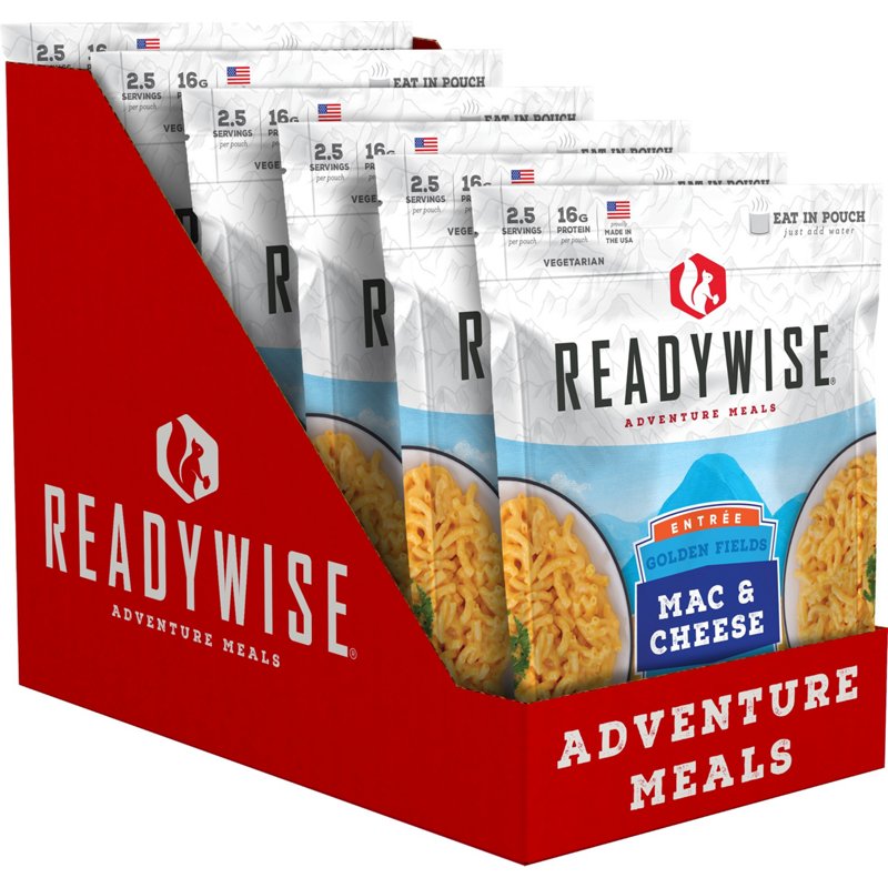 Wise Company Readywise Golden Fields Mac and Cheese 6-Pack - Camp Food And CookwareBring your dinner with you out the door with the Wise Company Readywise Golden Fields Mac and Cheese 6-Pack. The bag is re-sealable, which is great for eating on-the-go, and the macaroni is ready to eat by simply adding water. Wise Company Readywise Golden Fields Mac and Cheese 6-Pack - Camp Food And Cookware at AcademWise Company