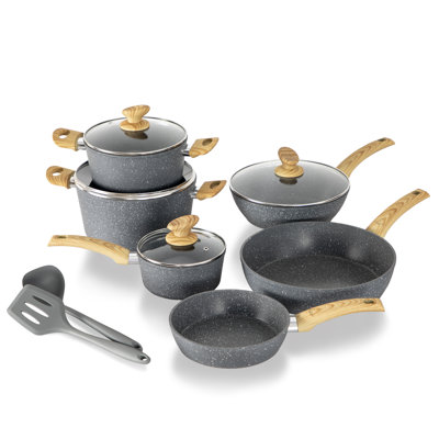 Djavad 12 Piece Nonstick kitchen Cookware Pots and Pans SetUpgrade your kitchen with our Granite Black Nonstick Kitchen Cookware Induction Pots and Pans Sets, 12 Pieces! Say goodbye to sticky, scratched, and warped pans. Crafted with a triple granite layer and high-grade aluminum, our cookware ensures even heat distribution and durability. The larger high magnetic conductive sPrep & Savour