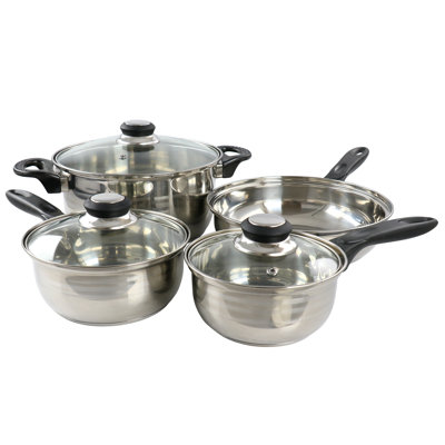 Cook Pro 7-Piece Stainless Steel Cookware SetSet includes 1 Qt covered sauce pan, 2 qt covered saucepan, 5 qt covered dutch oven and 9.5" open frypan Mirror polished finish for high shine Dishwasher safe Cook ProCook Pro