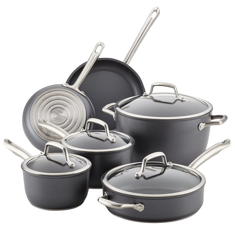 • Circulon 11-piece Nonstick Cookware Set, BrownEvery aspiring chef will want this Circulon cookware set in their arsenal.PRODUCT FEATURES TOTAL Food Release System features metal utensil safe premium nonstick on raised circles for superior cooking release and effortless cleanups. Hard-anodized construction evenly distributes heat. Impact-bonded stainless steel base