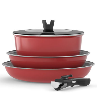 6 - Piece Non-Stick Aluminum Cookware SetThe removable handle lets you experience kitchenware's ultimate versatility. It can go from stove to oven, serve on the table, and into the fridge. Blooming Color: RedBlooming