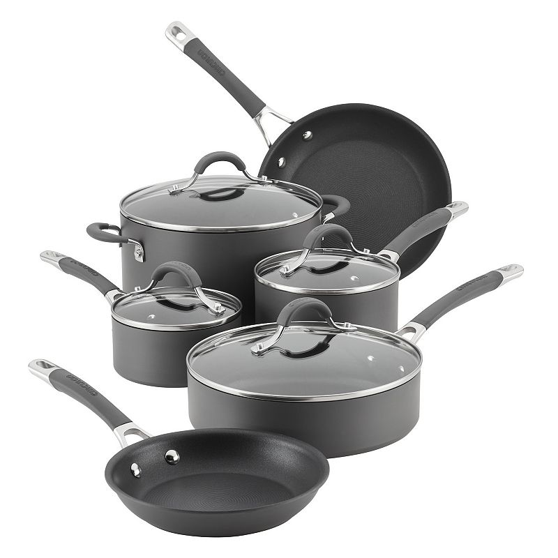Circulon Radiance 10-pc. Hard-Anodized Nonstick Cookware Set, GrayCirculon Radiance is engineered with superior nonstick technology and time- and energy-saving dishwasher-safe convenience, making it a must-have in every busy kitchen. Oven safe to 400°F, the cookware features tempered glass lids and sturdy, dual-riveted stainless steel handles Heavy-duty dishwasher-safe hard-anodizedCirculon