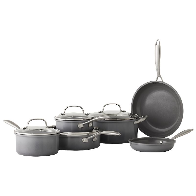 Food Network 10-pc. Nonstick Ceramic Cookware Set, GreyCook to your heart's content with this easy-to-use Food Network ceramic cookware set.Gift Givers: This item ships in its original packaging. If intended as a gift, the packaging may reveal the contents.PRODUCT FEATURESDurable, two-layer ceramic coating for easy releaseTempered glass lids seal in moisture and flavorComfFood Network