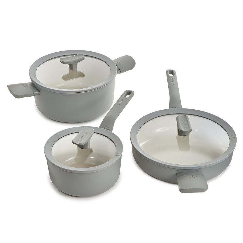 BergHOFF Balance 6 pc Nonstick Ceramic Cookware Set With Glass Lid, GrayCook with confidence using the BergHOFF Balance 6 pc Nonstick Ceramic Cookware Set With Glass Lid. This set features a nonstick ceramic coating and glass lids, allowing for convenient monitoring while cooking. FEATURES Upgrade and experience a healthier cooking lifestyle, CeraGreen's non-toxic, PTFE-free, PFAS-free, coBergHOFF