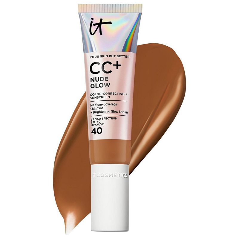 IT Cosmetics CC+ Nude Glow Lightweight Foundation + Glow Serum with SPF 40 and Niacinamide, Size: 1.08 FL Oz, Deep HoneyWhat it is:A color-correcting, medium-coverage skin tint formulated with brightening glow serum and SPF 40 that delivers an immediate, visibly healthy glow.Skin Type: Normal, Dry, and CombinationCoverage:MediumFinish:RadiantFormulation:LiquidSPF:SPF Over 30Highlighted Ingredients: - Niacinamide: Visibly brightens, smooIT Cosmetics
