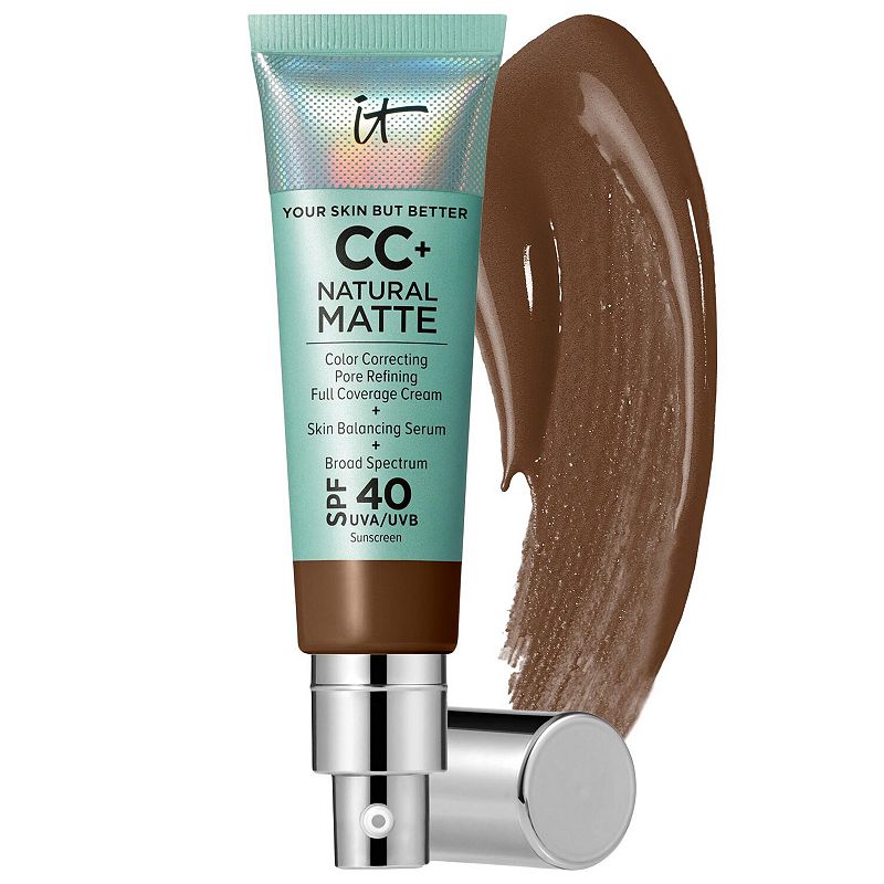 IT Cosmetics CC+ Cream Natural Matte Foundation with SPF 40, Size: 1.08 FL Oz, Neutral DeepWhat it is:A full-coverage matte foundation for oily skin, skin-balancing serum, and broad-spectrum SPF 40 sunscreen in one.Coverage:FullFinish:MatteFormulation:CreamSPF:SPF 40Highlighted Ingredients:- Air Licium: Instantly creates a skin-blurring effect; absorbs and reduces shine.- Lentil Seed Extract: Minimizes the lIT Cosmetics