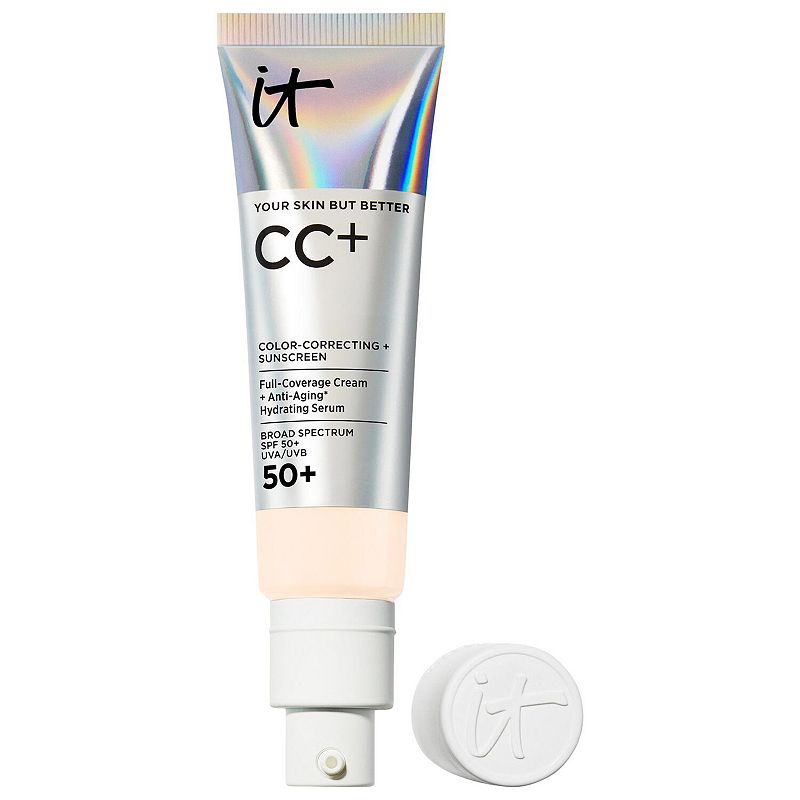 IT Cosmetics CC+ Cream Full Coverage Color Correcting Foundation with SPF 50+, Size: 1.08 FL Oz, Fair PorcelainWhat it is: The #1 SPF foundation in America* is a full-coverage foundation, hydrating & anti-aging serum, and SPF 50+ sunscreen in one-now in extended shades. Coverage: Full Finish: NaturalFormulation: Cream SPF: SPF over 30Skin Type: Normal, Dry, Combination, and Oily Highlighted Ingredients: -Hyaluronic Acid: HydratIT Cosmetics