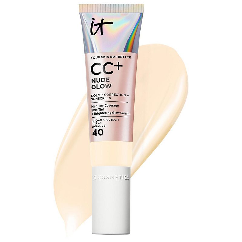 IT Cosmetics CC+ Nude Glow Lightweight Foundation + Glow Serum with SPF 40 and Niacinamide, Size: 1.08 FL Oz, Fair IvoryWhat it is:A color-correcting, medium-coverage skin tint formulated with brightening glow serum and SPF 40 that delivers an immediate, visibly healthy glow.Skin Type: Normal, Dry, and CombinationCoverage:MediumFinish:RadiantFormulation:LiquidSPF:SPF Over 30Highlighted Ingredients: - Niacinamide: Visibly brightens, smooIT Cosmetics