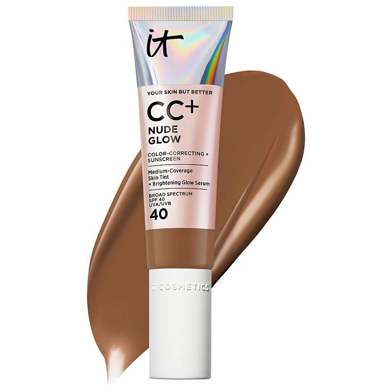 IT Cosmetics CC+ Nude Glow Lightweight Foundation + Glow Serum with SPF 40 and Niacinamide, Size: 1.08 FL Oz, Neutral DeepWhat it is:A color-correcting, medium-coverage skin tint formulated with brightening glow serum and SPF 40 that delivers an immediate, visibly healthy glow.Skin Type: Normal, Dry, and CombinationCoverage:MediumFinish:RadiantFormulation:LiquidSPF:SPF Over 30Highlighted Ingredients: - Niacinamide: Visibly brightens, smooIT Cosmetics