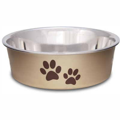 Dog Food Water Bowl No Tip Stainless Steel Pet Bowl No Skid Spill ProofBoth functional and beautiful. They are a revolutionary design combining stainless steel wrapped in polyresin and finished off with a removable soy based rubber ring to prevent spills and reduce noise. Dishwasher safe. Please remove rubber ring before washing. QICQA Color: ChampagneQICQA