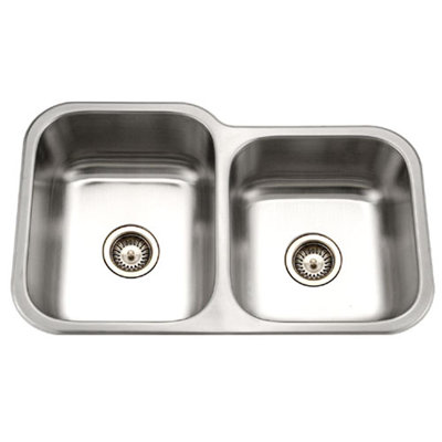 Medallion Classic 31.5" L x 17.94 - 20.19" W Undermount Double Bowl 60/40 Kitchen Sink with Small Right BowlThe Houzer MEC-3220SR-1 Medallion Classic Series Undermount 60/40 Double Bowl Kitchen Sink features offset design that offers flexibility and design flair. With prep bowl on the right, this sink has a deep drawn straight wall with a moderate radius, which makes it quick to clean. For over three decades, Houzer has beenHouzer