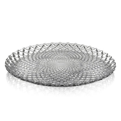 Lytia Glass Dinner Plate Set of 12Lytia glass dinner plate set is a stunning work of functional art that will transform your dining experience. The rich, sparkling details and diamond motif create a mesmerizing visual that will impress your guests. Crafted with care, the Lytia is both beautiful and highly practical, making it a must-have for any home.Wrought Studio