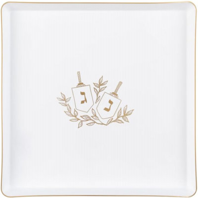 Disposable Plastic Hanukkah Dinner Plate for 72 Guests10.75 inch Edge Square Plastic Hanukkah Plates - Chanukah Party Design Disposable Plates Design White and Gold Hanukkah Party Plates Floral Hanukkah Design with Dreidel Plates Heavy Duty Disposable and Reusable Plastic Material Premium Heavyweight Elegant Tableware Dishes Square Shape Glossy Finish 100% Food GraEcoQuality